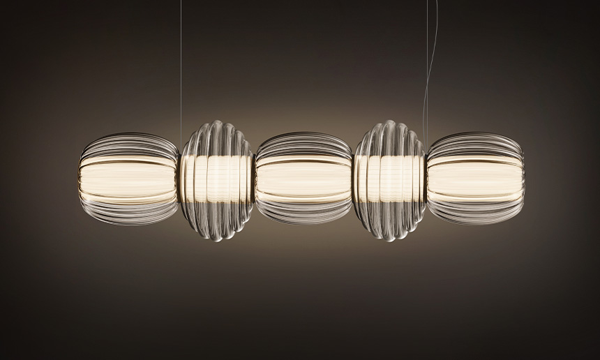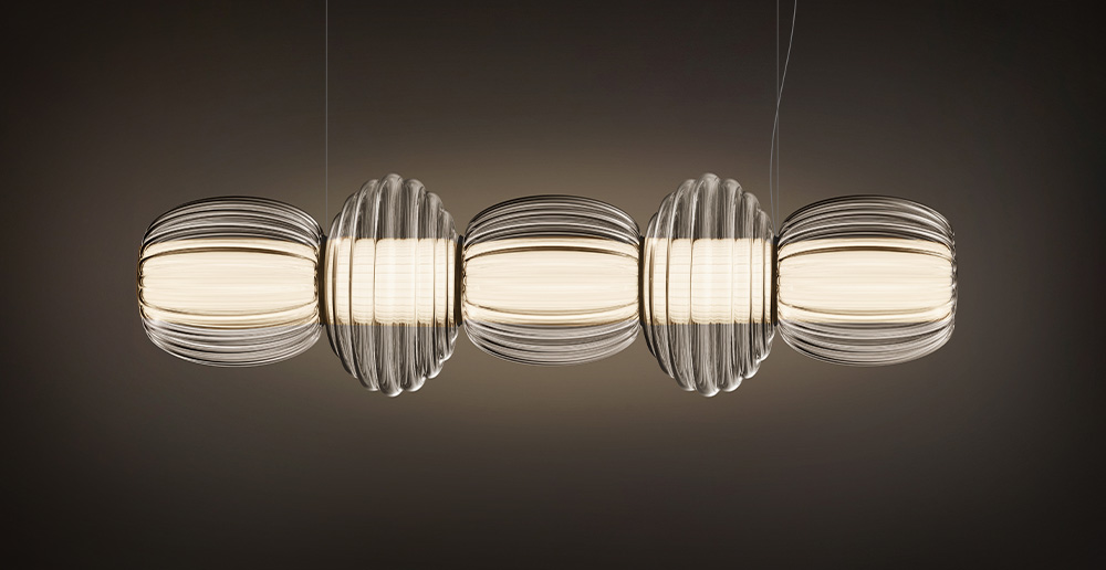 Contardi annuncia la sua prima collaborazione con Controvento presentando la collezione Alma, che unisce due classici senza tempo: il diffusore in tessuto bianco plissettato e la bolla di vetro soffiato che lo avvolge, creando un effetto galleggiante e contemporaneo.