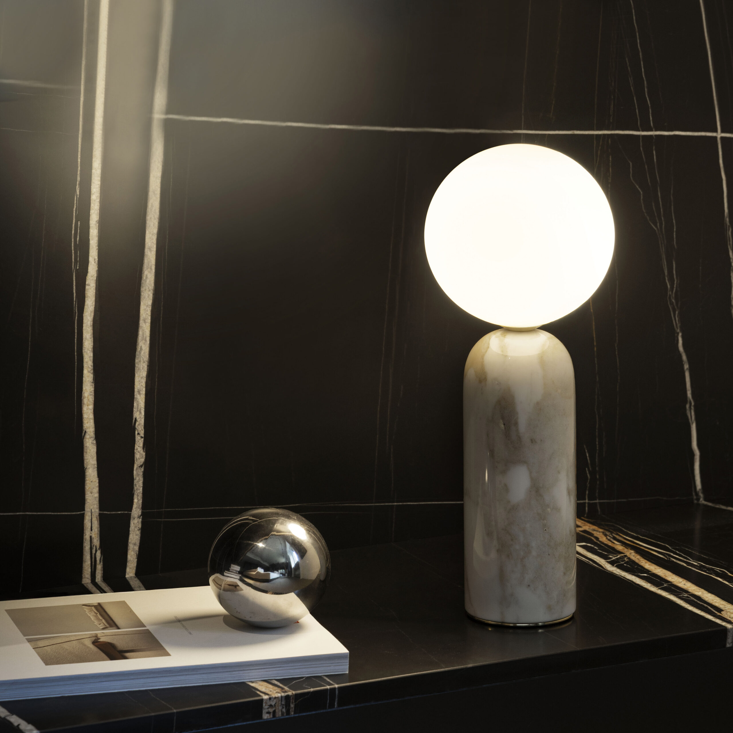 L'uso del prezioso marmo, un elemento chiave della collezione, rende Emma un oggetto di vero design che aggiunge luce a qualsiasi superficie.