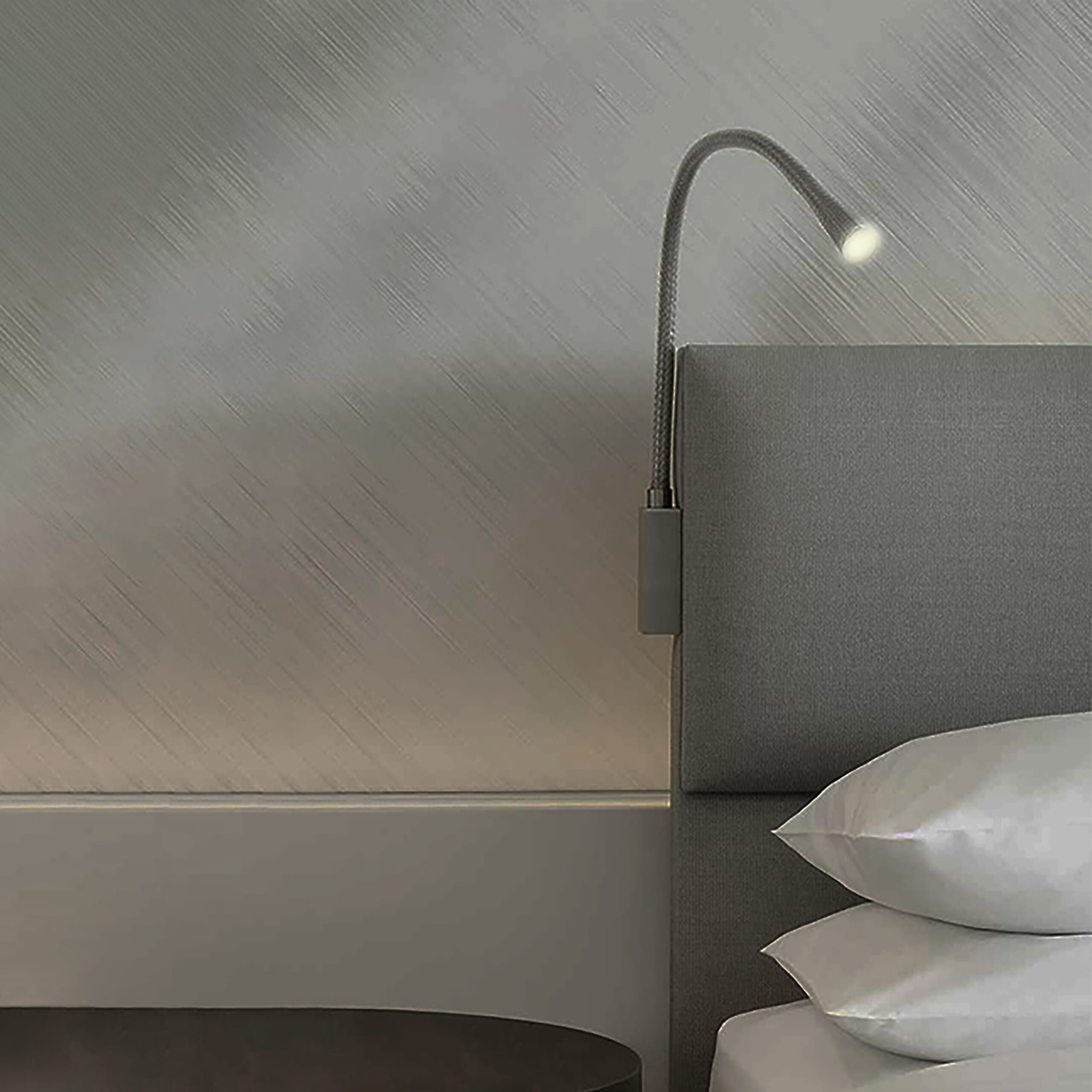 Modello facilmente “personalizzabile” nei colori della pelle, nella lunghezza del braccio e forma e finitura della basetta a parete.