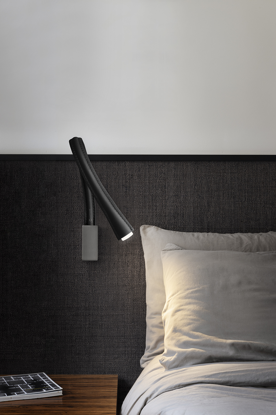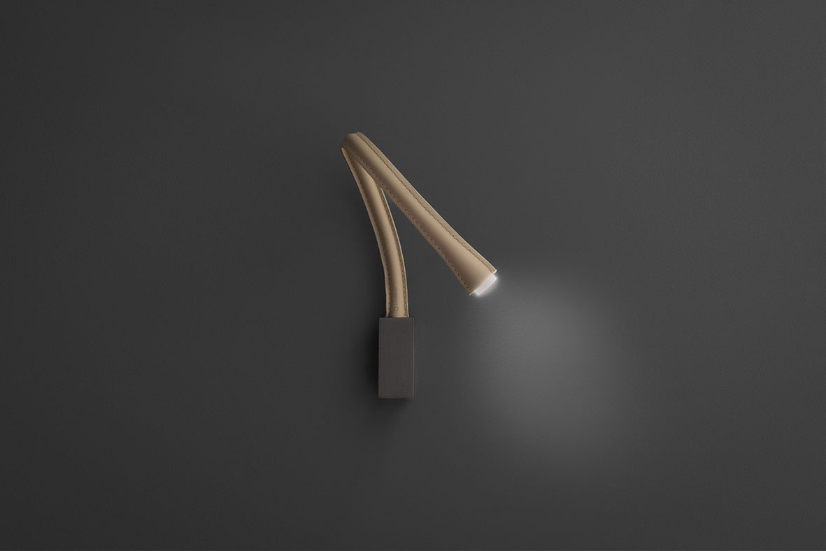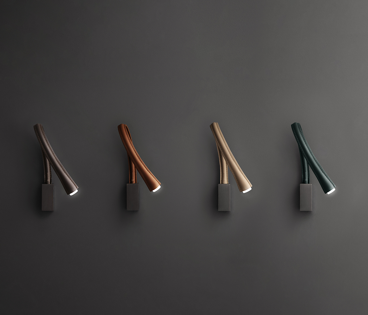 Flexiled, prodotto storico e iconico della collezione di Contardi, disponibile in due varianti, con braccio flessibile rivestito in pelle con doppia cucitura ai lati o ricoperto da una maglia d'acciaio poi avvolto da una guaina trasparente, offre opzioni di personalizzazione nei colori e nelle dimensioni.