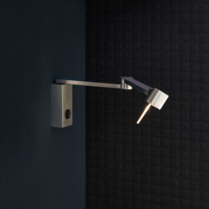 Disponibile nella versione a batteria, con attacco magnetico ed in quella cablata a parete. La versione a batteria è ricaricabile attraverso la porta USB tipo C (che nella versione cablata viene utilizzata per la ricarica dello smartphone o dei tablets). II comando (a tre livelli di intensità) è comodamente posizionato sulla testa. La versione a batteria è corredata dai seguenti accessori: staffa a fissaggio a parete, staffa per fissaggio al tavolo e tasca in pelle con contrappeso per bracciolo poltrona/divano.