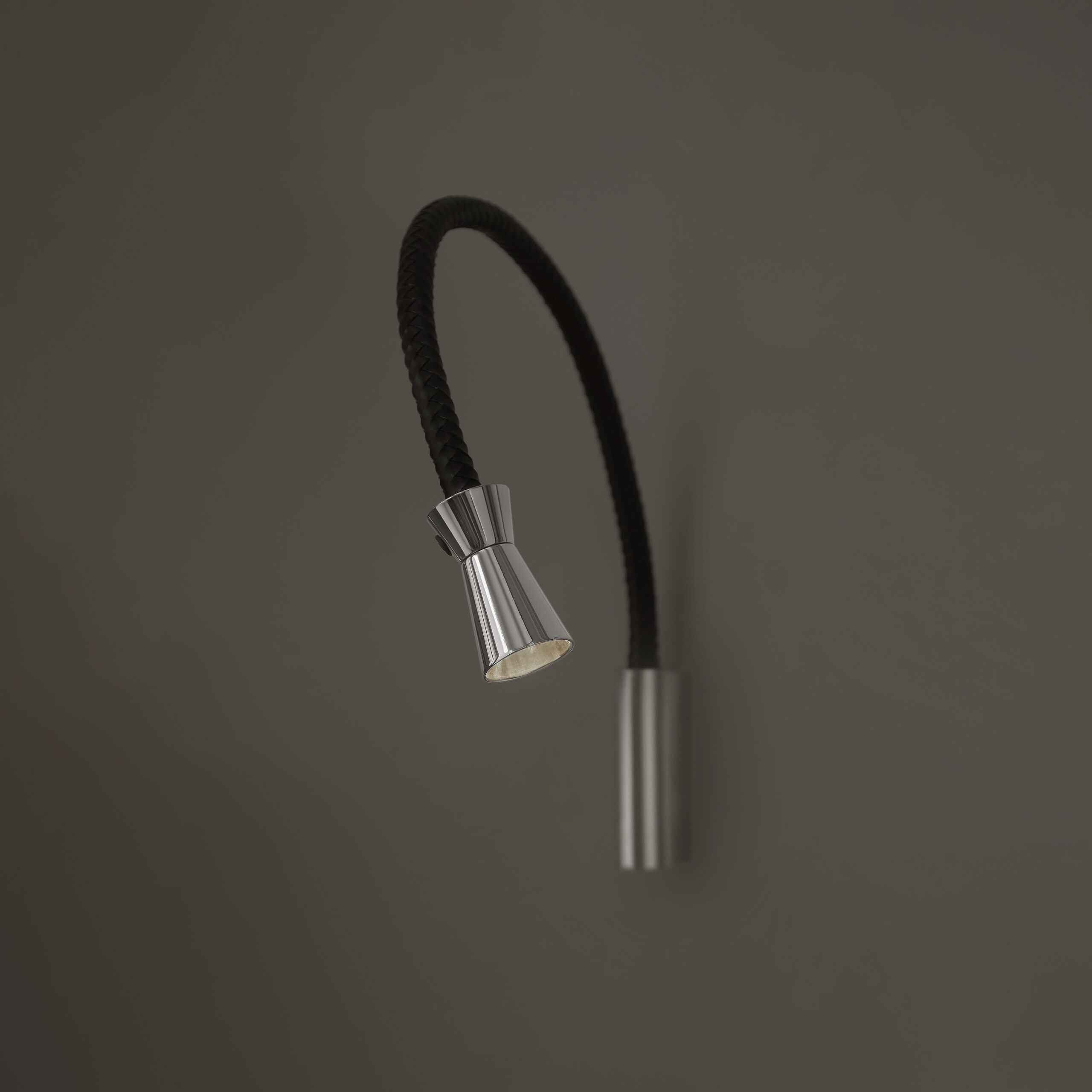 Innovativa lampada da lettura, nasce dall’idea di un prodotto trasportabile e lussuoso per rispondere a specifiche esigenze di spazio ed installazione, rendendola adatta ad ambienti con carattersitiche particolari, quali yachts e superyachts, edifici storici, esclusive boutiques. La testa riprende il design del dosatore per i cocktails (G+T sta per Gin & Tonic), il braccio flessibile è in ottone ricoperto da cuoio intrecciato.
