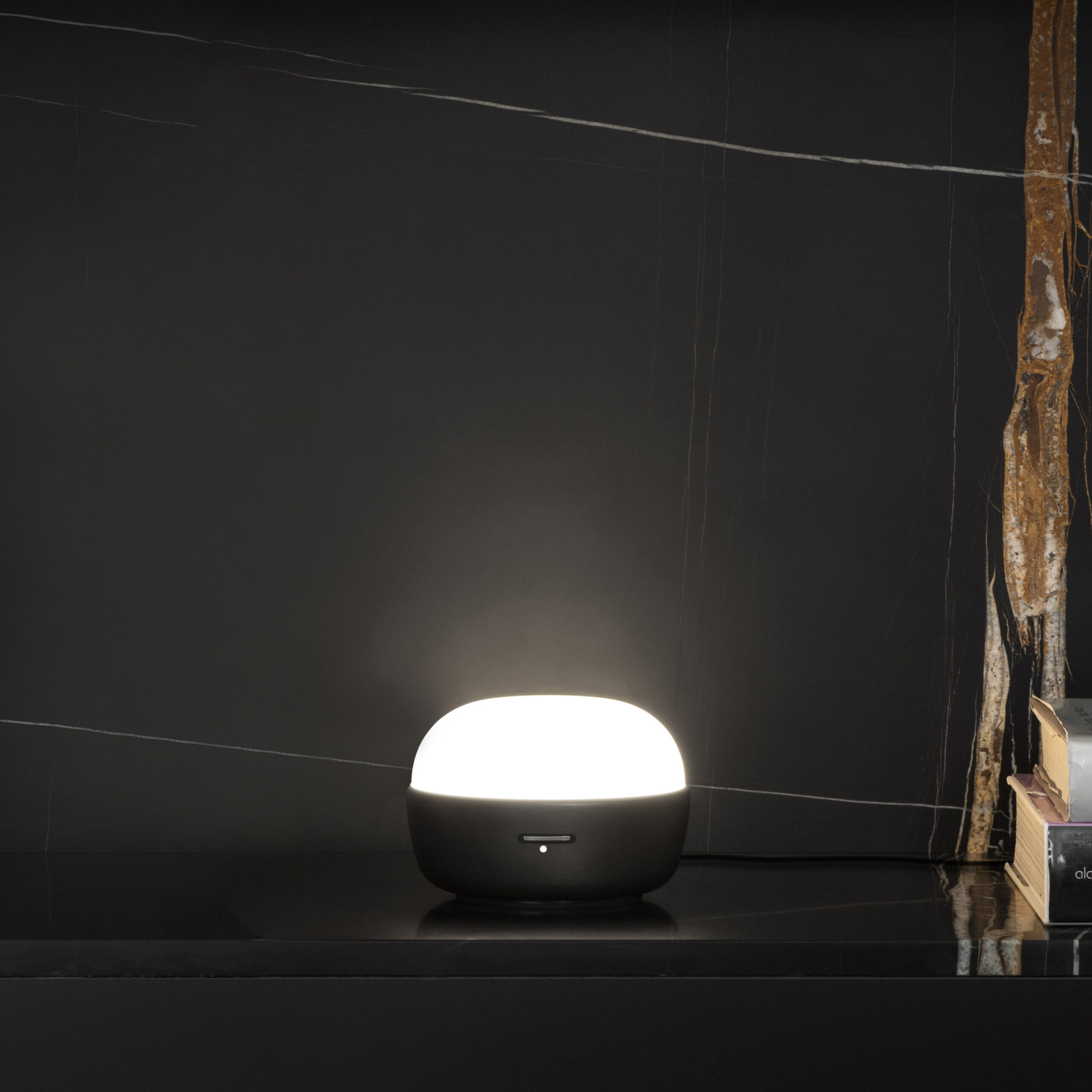 La versione da tavolo è disponibile nelle finiture champagne, bronzo-nickel spazzolato e antracite.