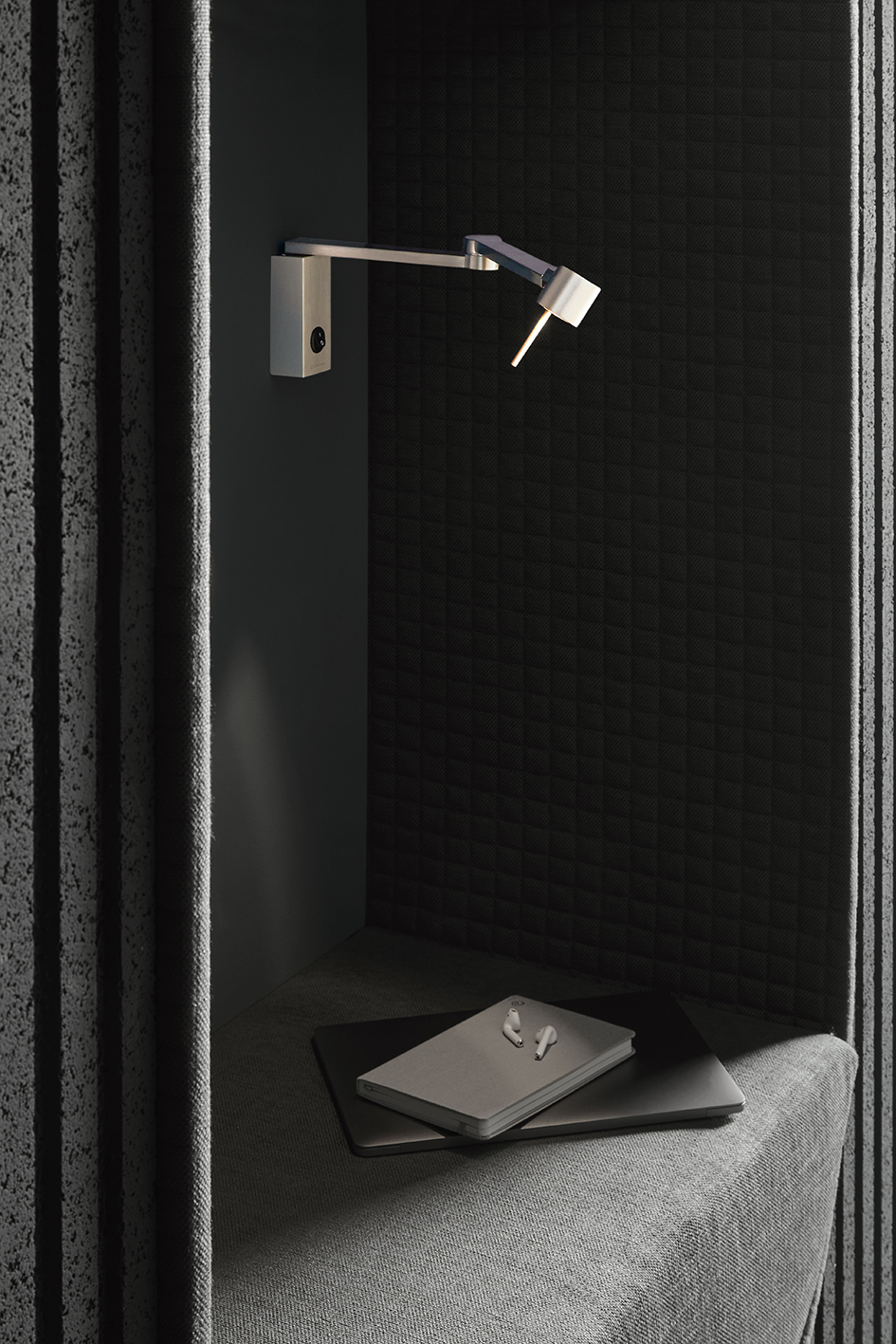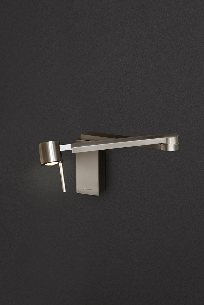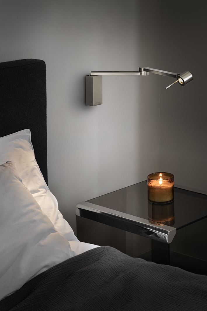 Può essere utilizzata al fianco del letto o direttamente sulla testiera, ed è caratterizzata da un braccio a doppio snodo che si muove sia sull'asse della base che sullo snodo tra i due braccioli. Anche la testa è regolabile.